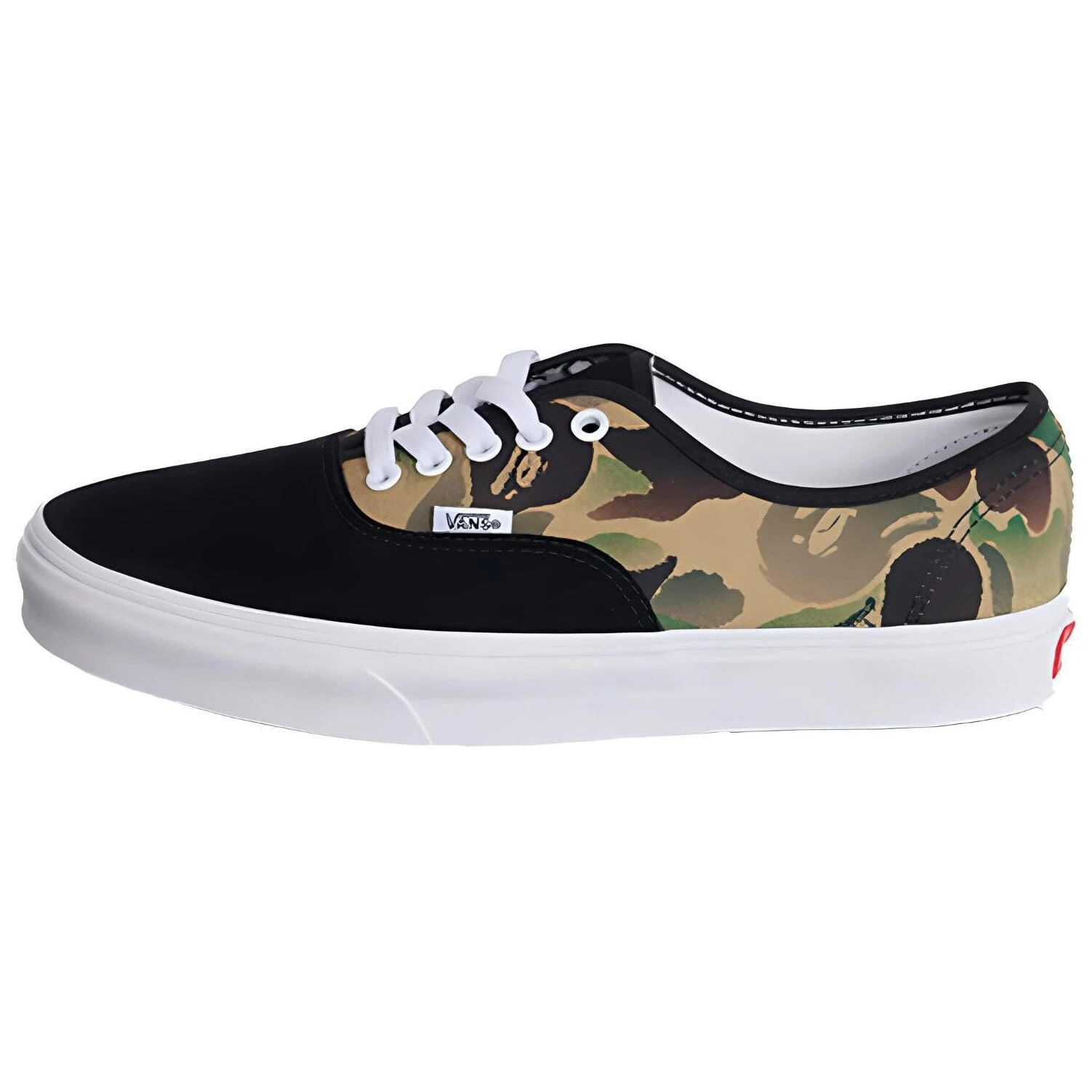 A BATHING APE x Vans Authentic Cushioned Wear-Resistant Lightweight Low-Top Skateboard Shoes Unisex Black Camouflage