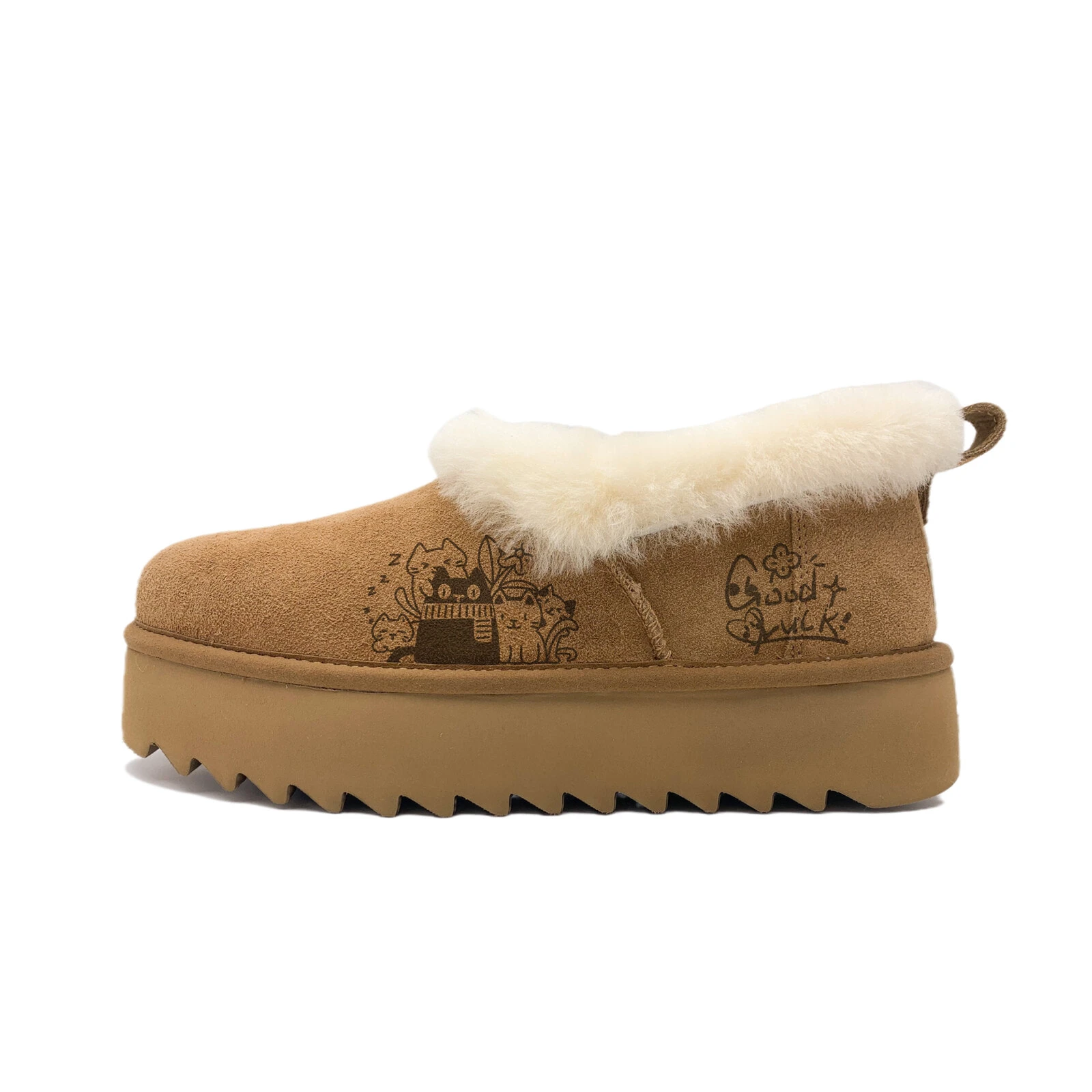 该定制鞋所选用原鞋款为ugg,货号为1166733-CHE。灵感来自于涂鸦小狗,采用了手绘设计工艺。