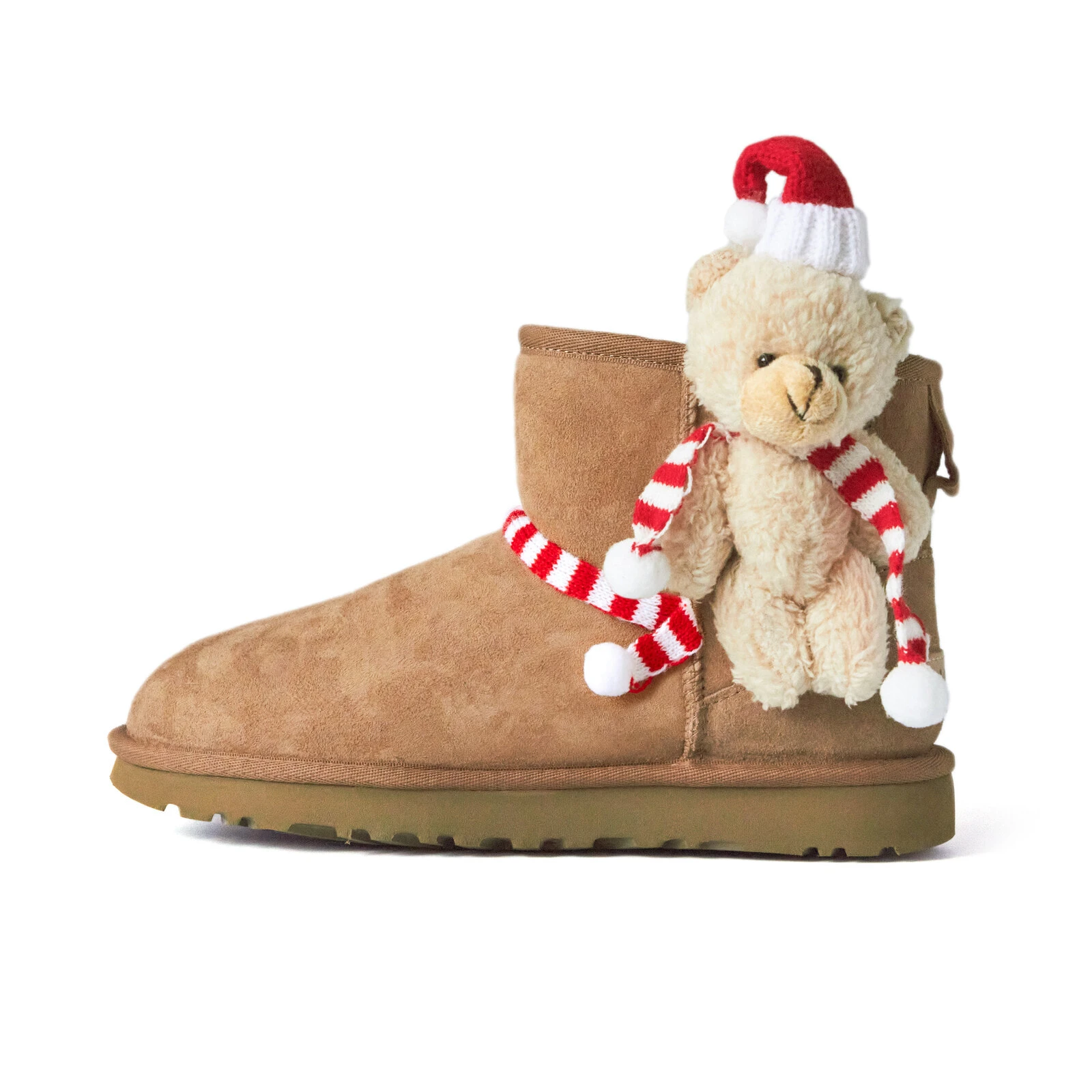 该款定制鞋选用原鞋为UGG短筒雪地靴,货号为1016222-CHE。本鞋款整体配色为清新的焦糖色,整体简洁百搭,全面对接潮流搭配。定制球鞋可以正常穿洗,穿着过程中尽量避免剧烈运动以及尖锐的物体划伤,请避免用高浓度有机溶剂擦洗,清洗时建议使用柔软的毛刷配合浓度适宜的清洗剂清洁。