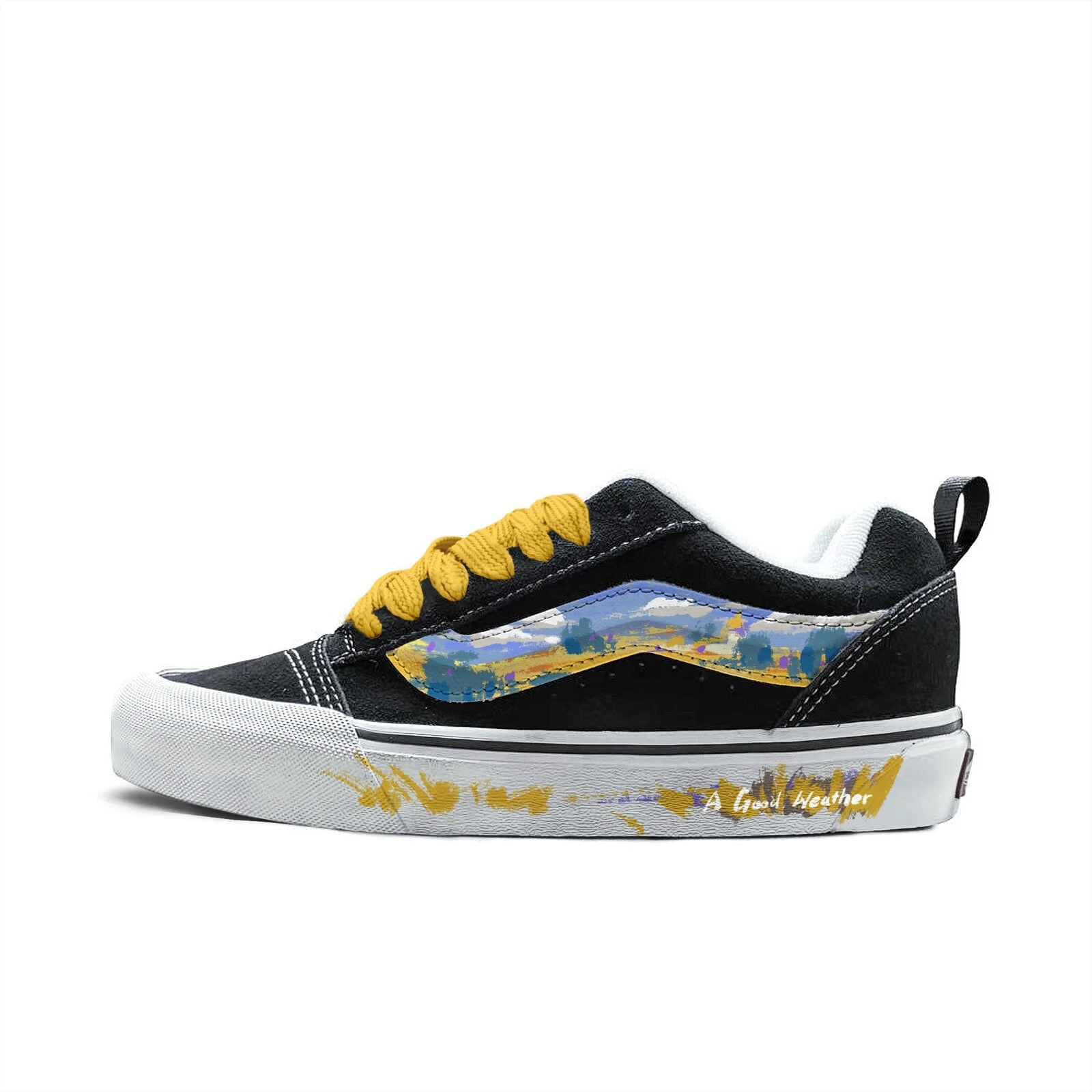 Футуристичные Vans Knu Skool Abrasion Resistant Low Top Skateboard Shoes Unisex Blue Yellow бросают вызов традиционным представлениям о спортивной обуви. Асимметричные линии, нестандартные материалы и инновационные способы крепления элементов создают уникальный визуальный эффект. Для смелых личностей, готовых экспериментировать со стилем и выделяться из толпы.