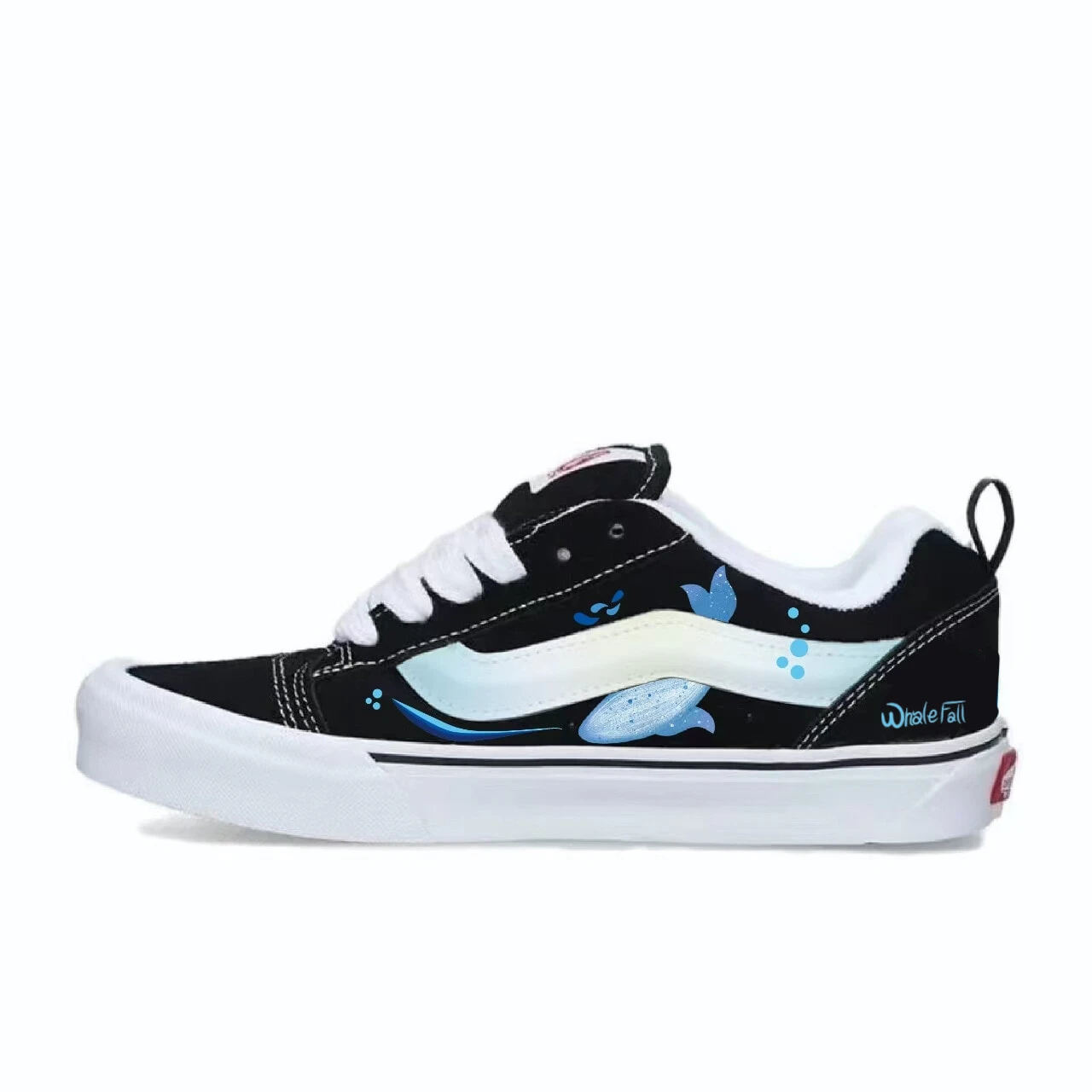 Кроссовки Vans Knu Skool Anti Slip Wear Resistant Low Top Skateboard Shoes Unisex Black Blue представляют собой гармоничное сочетание инноваций и практичности. Прочный протектор подошвы гарантирует надежное сцепление с различными поверхностями, а анатомическая колодка повторяет естественную форму стопы. Качественные материалы верха устойчивы к деформации и сохраняют внешний вид после многочисленных стирок.